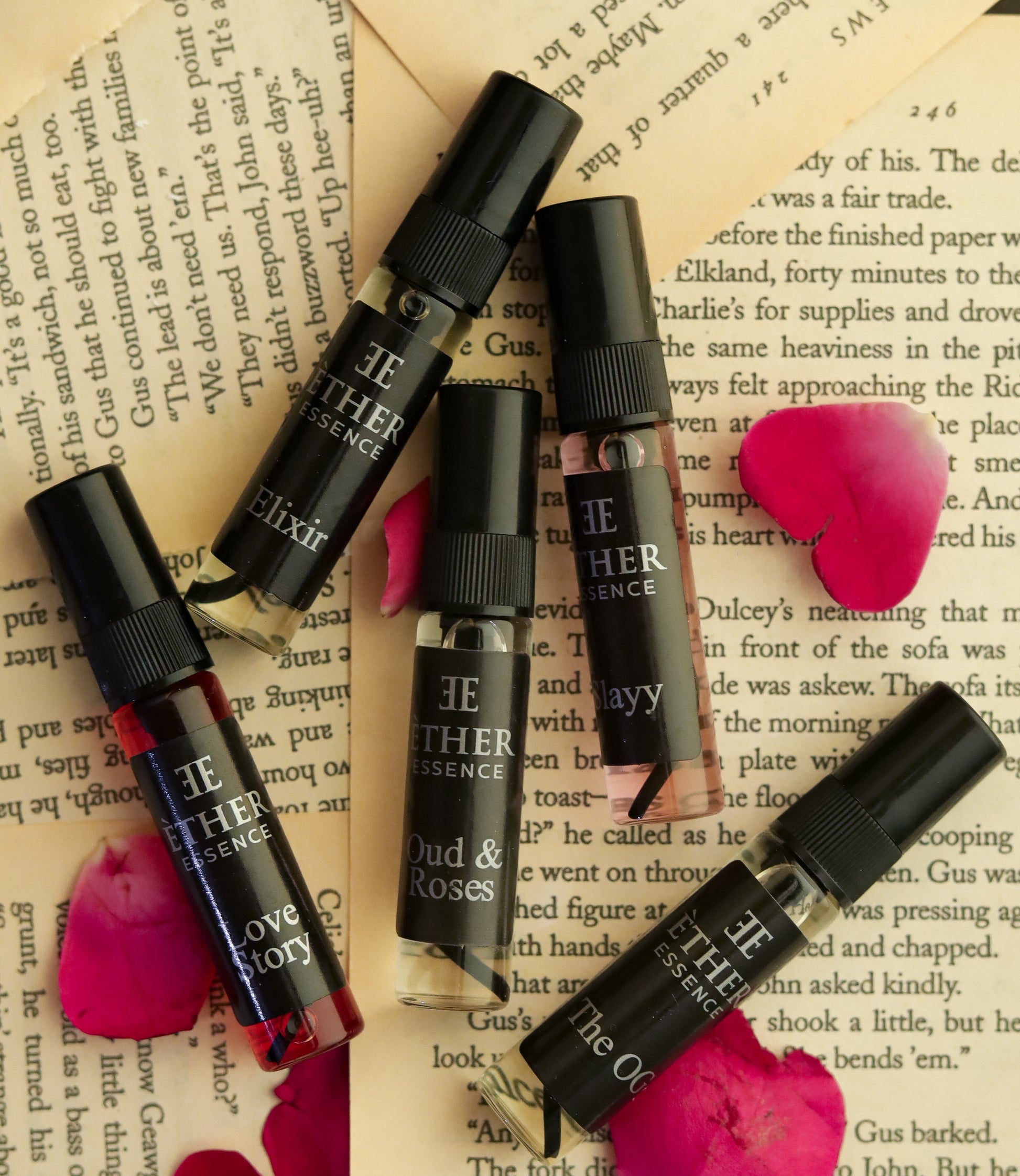 The Èther Essence Discovery Set gives you all five fragrances in a premium mini-collection — the simplest way to test them and see which one deserves the full bottle.